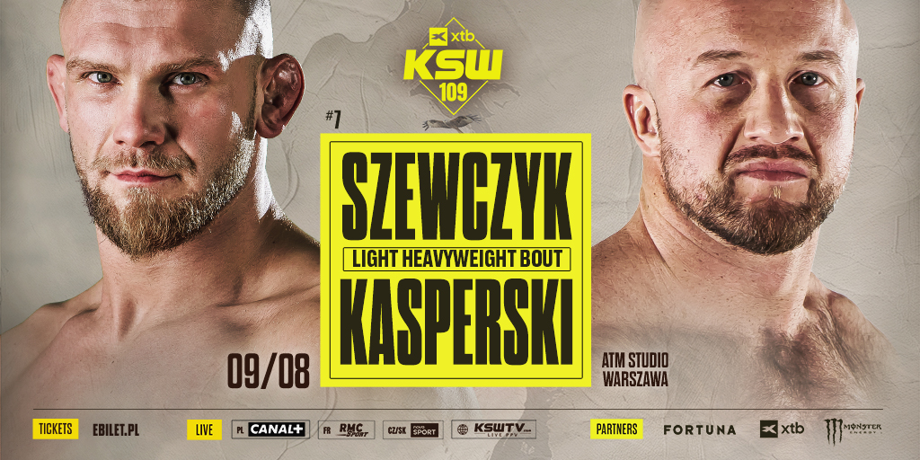 Gala XTB KSW 109 przyniesie ciekawe zderzenie w wadze półciężkiej, w którym Bartosz Szewczyk (8-4-1, 6 KO, 1 Sub), numer siedem rankingu tej kategorii wagowej, stanie w szranki z wielokrotnym mistrzem Polski w kickboxingu, niepokonanym w MMA Dawidem Kasperskim (2-0). Do pojedynku dojdzie 9 sierpnia w warszawskim Studiu ATM.