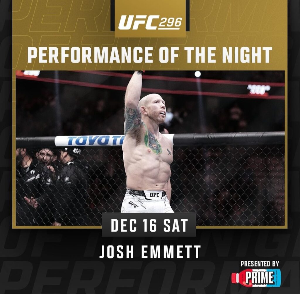Josh Emmett (19-4) po zwycięstwie przez KO w pierwszej rundzie zgarnął bonus za występ wieczoru.