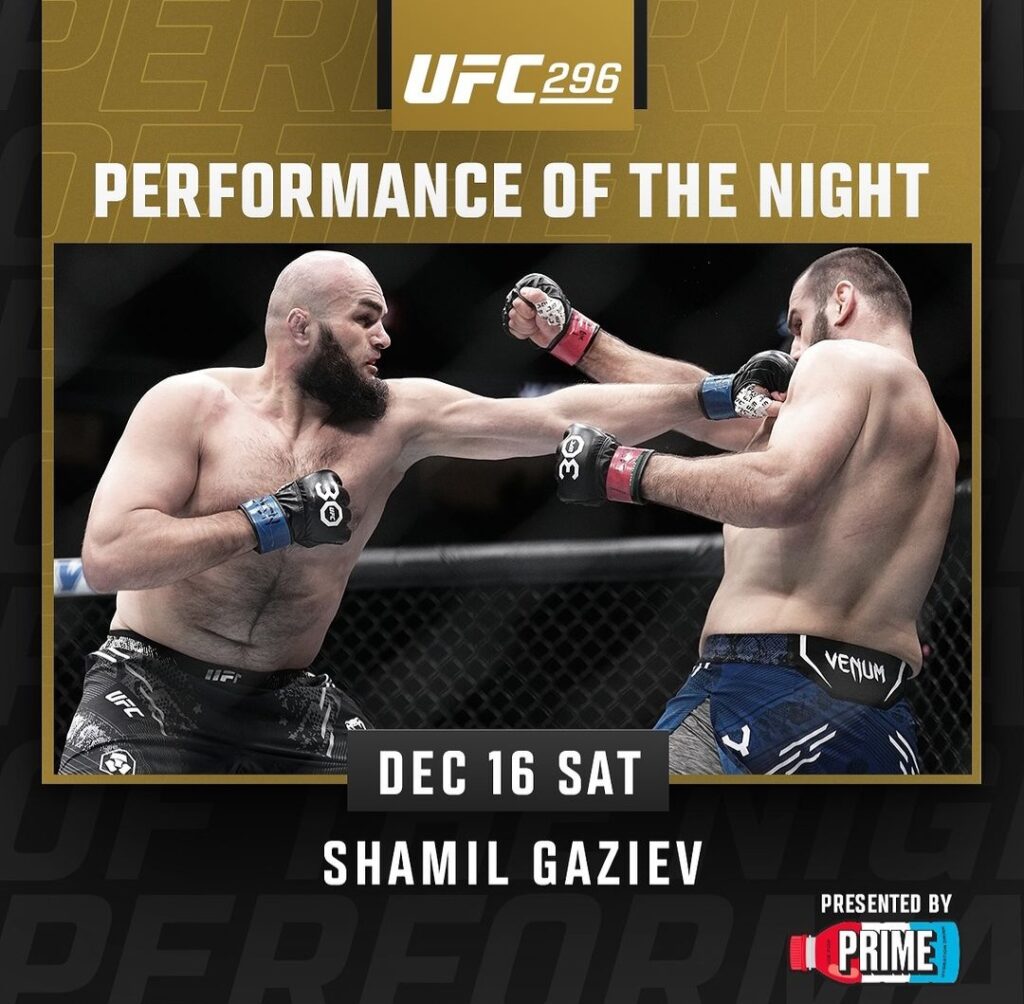 Shamil Gaziev (12-0) po zwycięstwie przez TKO w drugiej rundzie zgarnął bonus za występ wieczoru.