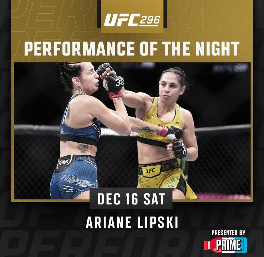 Ariane Lipski (17-8) po zwycięstwie przez poddanie w drugiej rundzie zgarnęła bonus za występ wieczoru.
