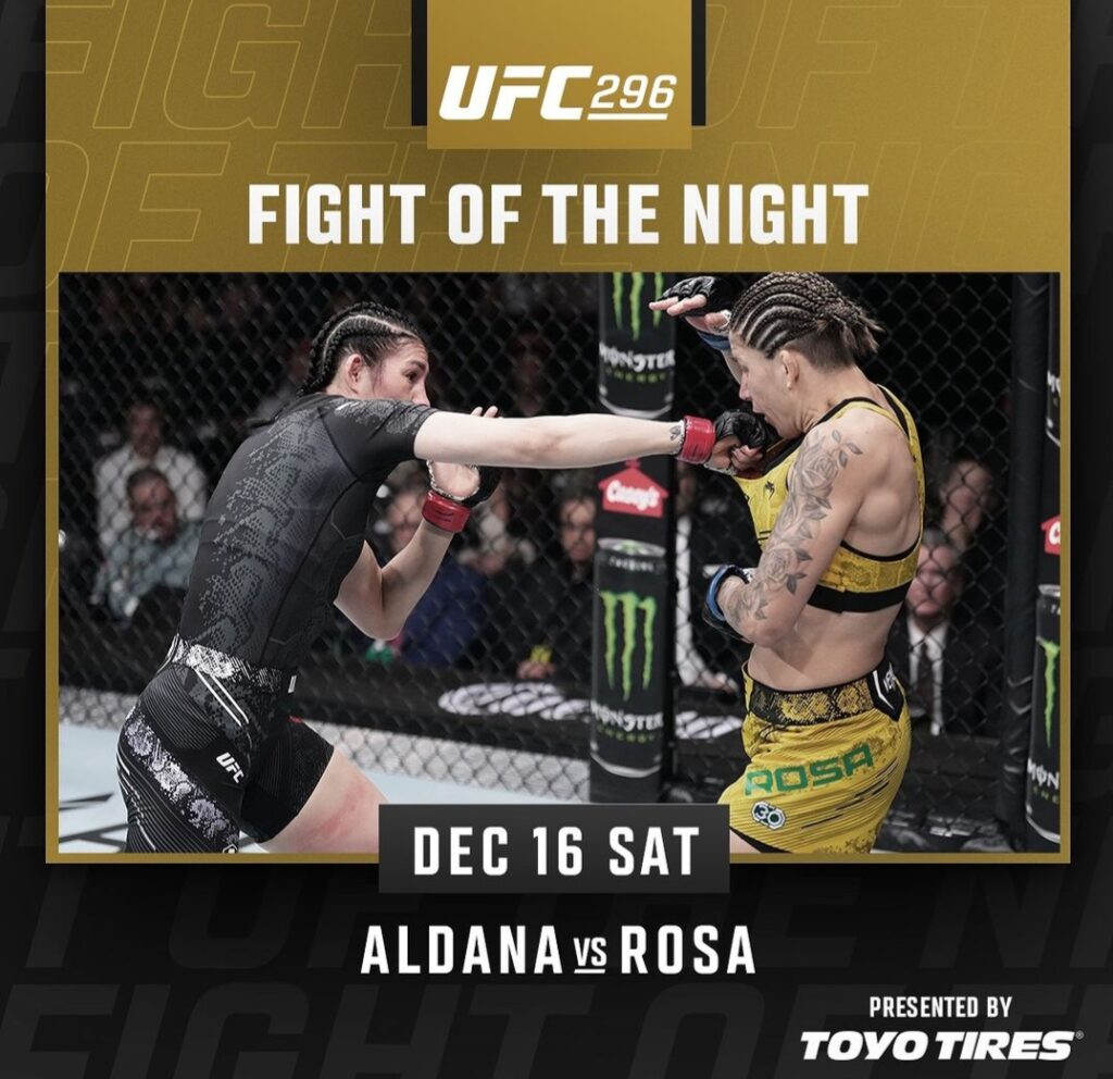 Irene Aldana (15-7) i Karol Rosa (17-6) otrzymały bonus za najlepszą walkę wieczoru.