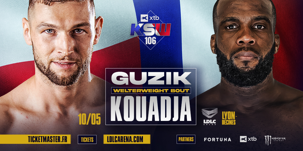 Podczas gali XTB KSW 106, w starciu w kategorii półśredniej, niepokonany w zawodowym MMA Michał Guziki (5-0, 1 KO, 1 Sub) przywita debiutującego w okrągłej klatce Joëla Kouadję (9-12, 5 KO, 1 Sub).