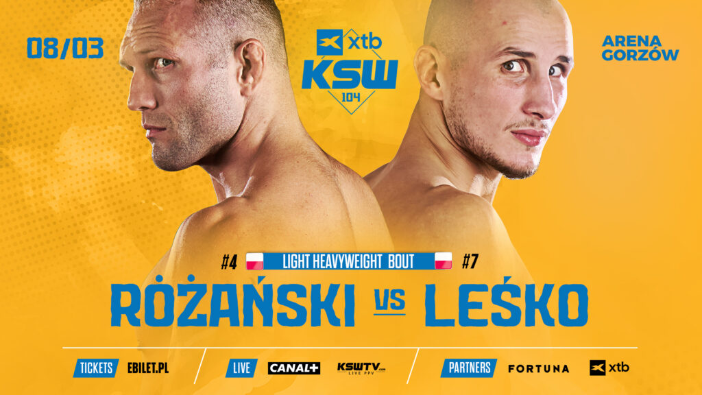 Jego rywalem będzie dający efektowne pojedynki Bartosz Leśko (14-5-2, 2 KO, 7 Sub), numer siedem tej kategorii. Do pojedynku dojdzie podczas gali XTB KSW 104 w Arenie Gorzów.