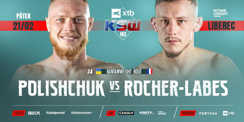21 lutego w starciu kategorii koguciej dojdzie do walki, w której reprezentujący Ukrainę Oleksii Polishchuk (12-5, 3 KO, 6 Sub), numer cztery rankingu tej kategorii wagowej, zmierzy się z zawodnikiem z Francji, Alfanem Rocher-Labesem (11-3, 2 KO, 4 Sub). Do starcia dojdzie podczas gali XTB KSW 103 w Libercu w hali Home Credit Arena.
