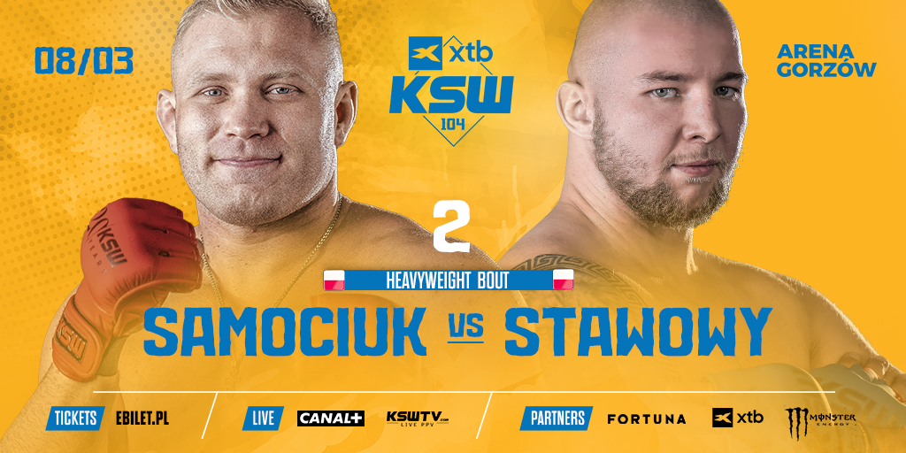 W konfrontacji królewskiej kategorii wagowej gali XTB KSW 104 w Gorzowie Wielkopolskim dojdzie do rewanżu pomiędzy Markiem Samociukiem (6-4, 4 KO)a Filipem „Czołgiem” Stawowym (10-5, 8 KO, 1 Sub). Starcie wagi ciężkiej rozstrzygnie się 8 marca podczas gali w Arenie Gorzów.